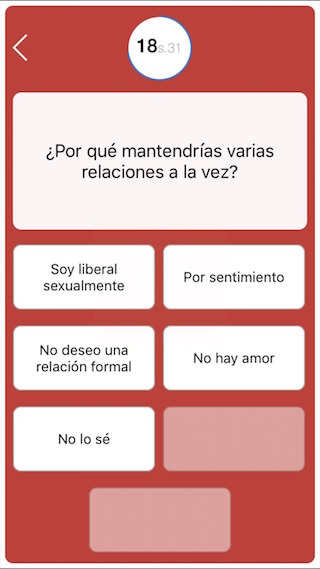 2 preguntas: Sexo y Convivencia, Resultado Partida Pareja Afín y Pantalla Contacto